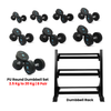 - Heavy-duty Rubber Encased Heads which minimize noise, floor damage, and wear and tear on the dumbbells themselves.