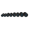 • Heavy-duty Rubber Encased Heads which minimize noise, floor damage, and wear and tear on the dumbbells themselves.