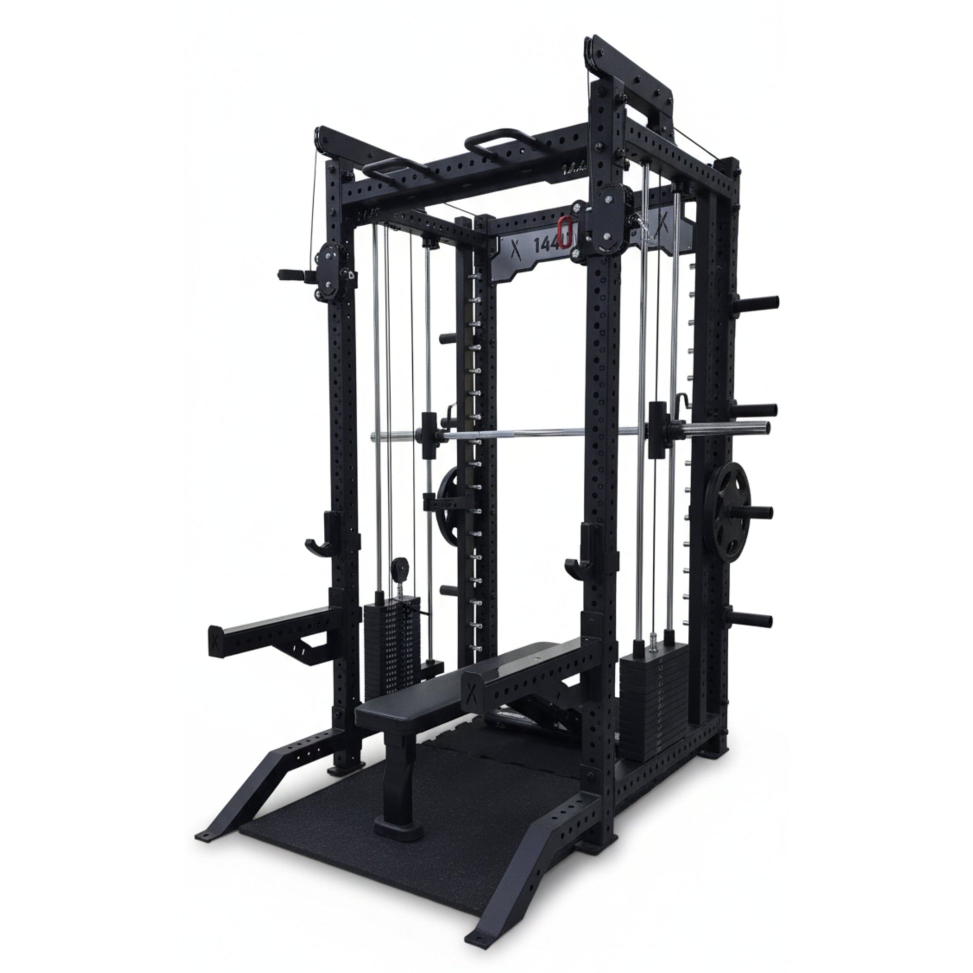 The 1441 Fitness Multi Function Smith Machine – Monster X is a heavy-duty, versatile gym machine perfect for serious strength training and muscle building. Crafted from commercial-grade steel with smooth aluminium pulleys and dual 80 kg weight stacks, it offers a safe and efficient workout experience for both home gyms and commercial fitness centers. Featuring an adjustable pull-up bar, multiple storage bars, and a built-in safety bar, it ensures functionality, safety, and organized training space all in one compact unit.