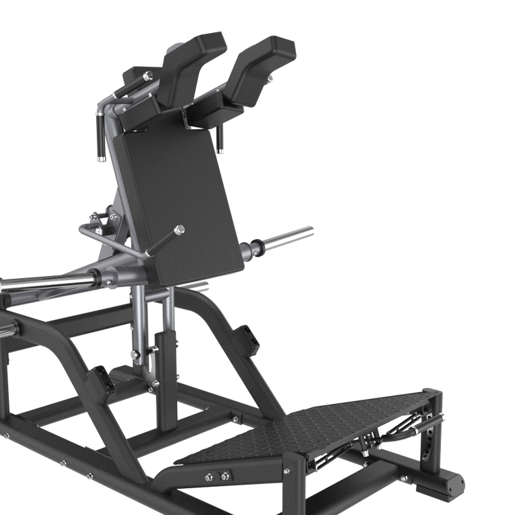 The Insight Fitness V Squat SH038 is designed to safely and effectively target the legs and buttocks through a controlled squat motion. It features an oversized anti-slip footplate with seven adjustable tilt angles, allowing users to choose their preferred stance and foot position for natural ankle movement. The machine's ergonomic shoulder pads and handles provide comfort and support throughout the exercise, ensuring proper form and reducing strain. Built with a sturdy frame, it offers stability and longevity for intense lower-body workouts.